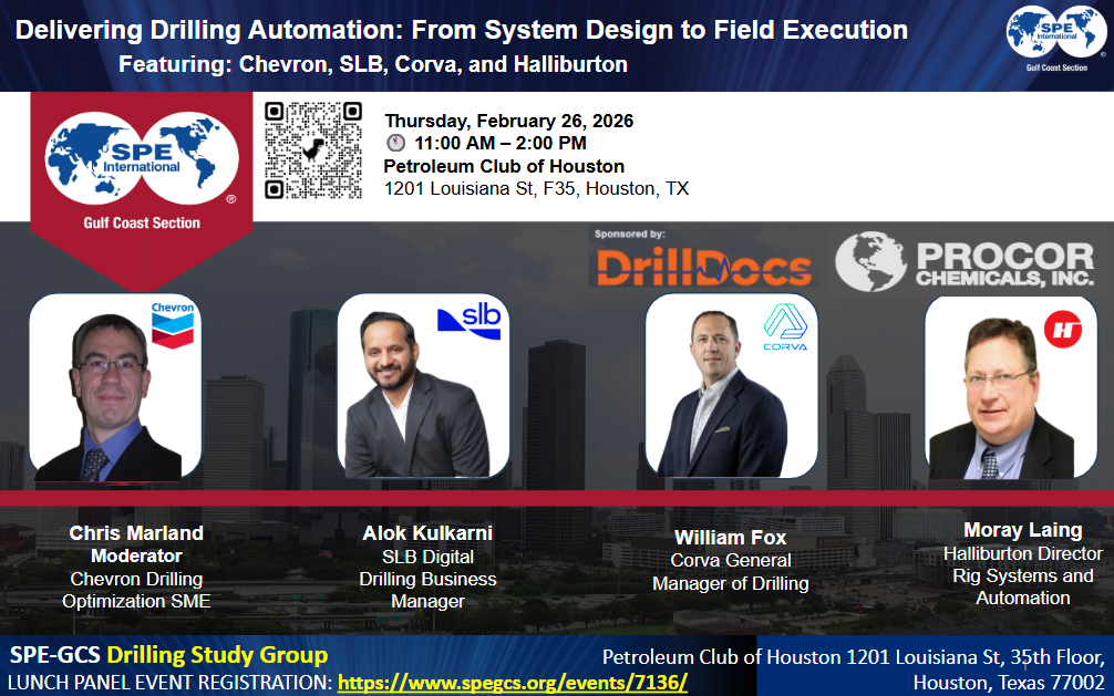 SPE GCS – Delivering Drilling Automation: From System Design to Field Execution Feb 26, 2026