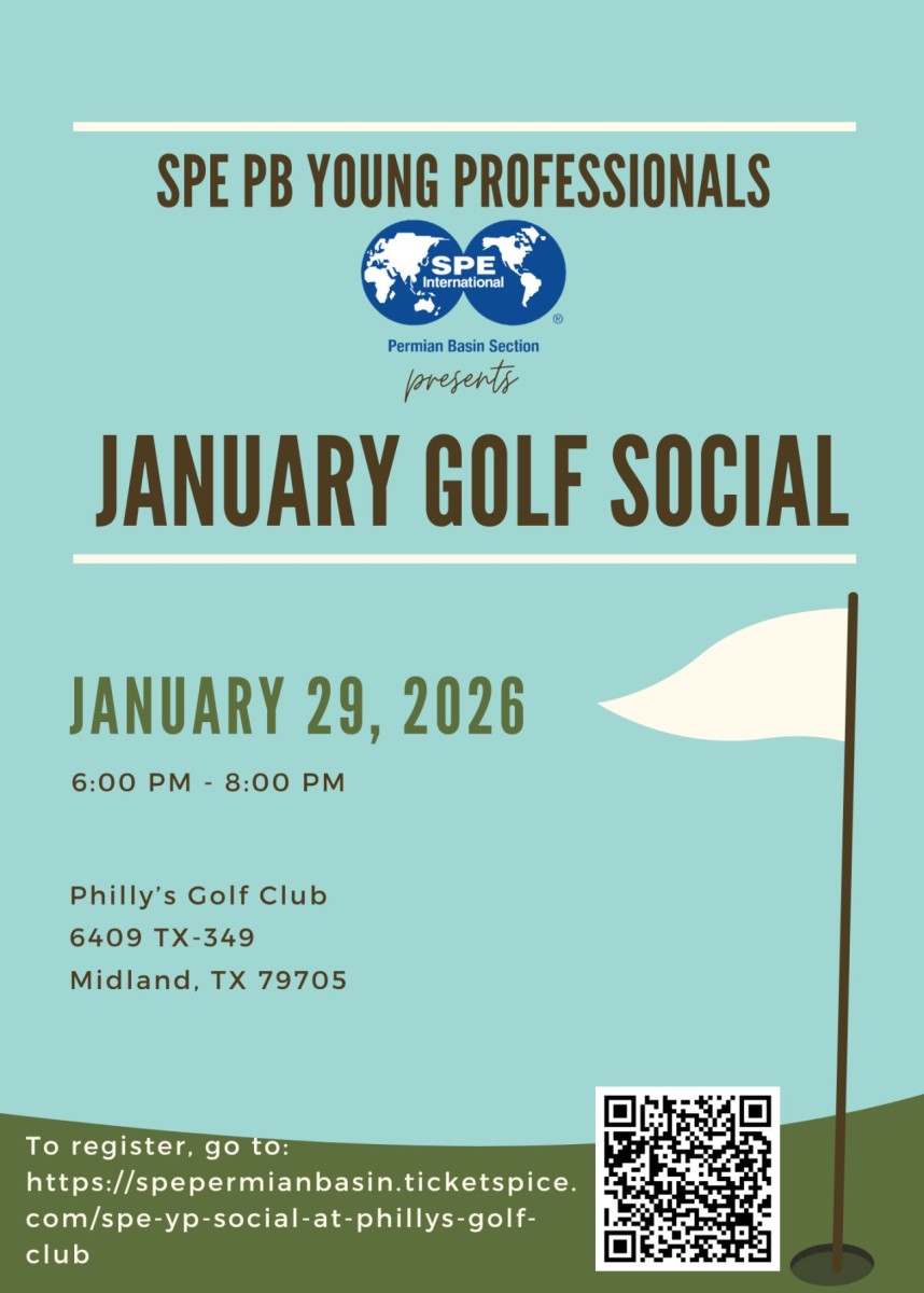 Tee up for networking at the SPE PB YP January Golf Social! Join SPE Young Professionals for a fun social night at Philly’s Gold Club in Midland, TX on January 29, 2026 from 6:00 PM to 8:00 PM! Your ticket includes full access to the indoor golf simulators, drink tickets, and catered food provided by SPE YP for all attendees. This event is open to everyone, no golf experience needed! Come on out to network, unwind, enjoy great food and drinks, and swing some golf clubs!